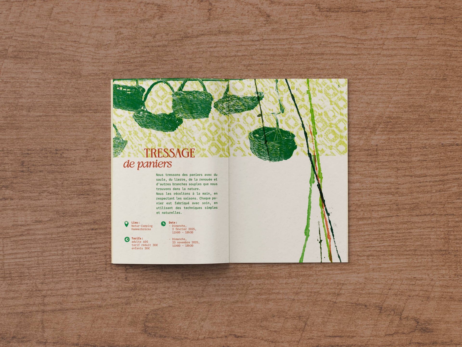 Créations : ateliers de vannerie, laine, huiles essentielles, argile…