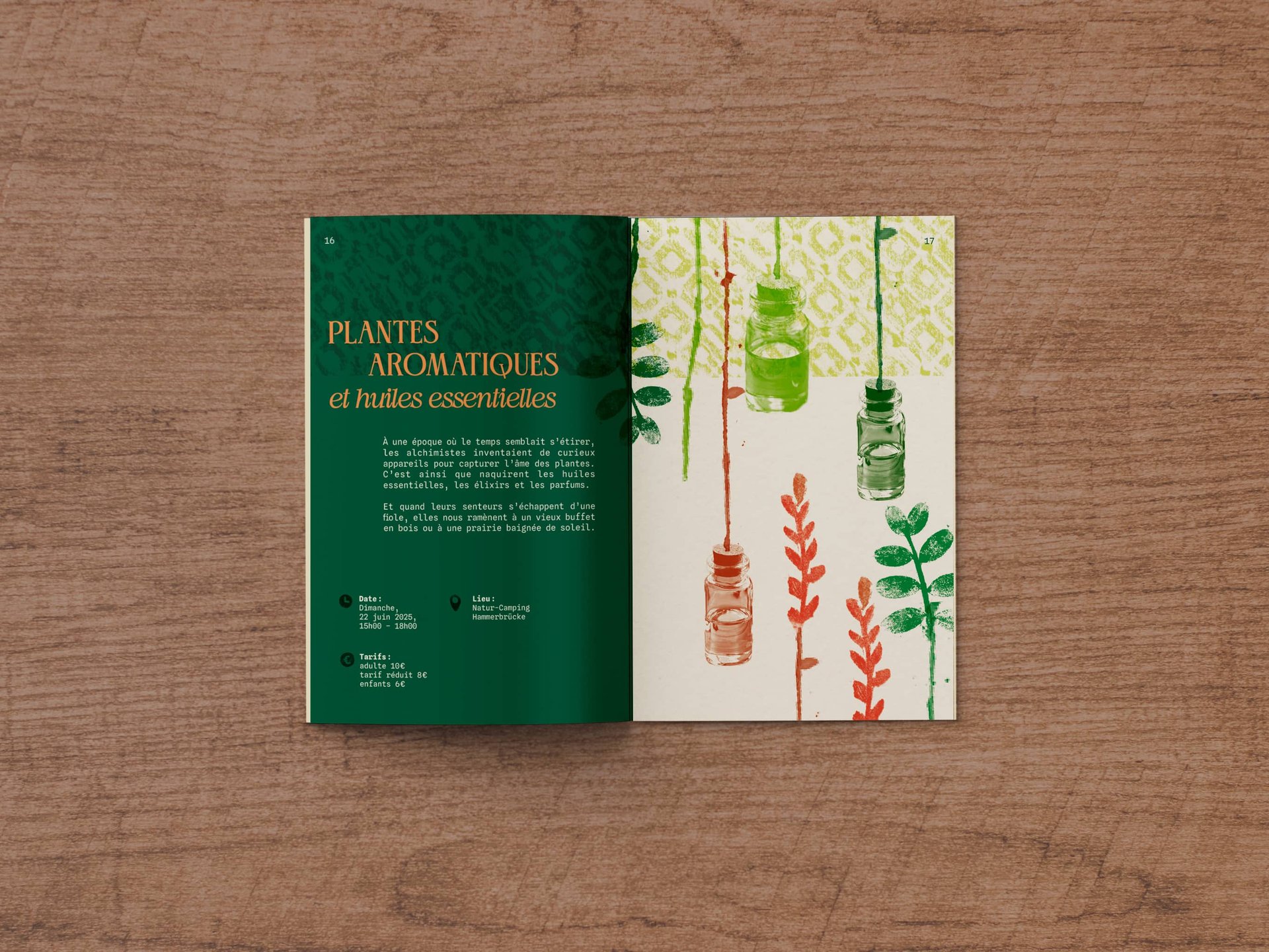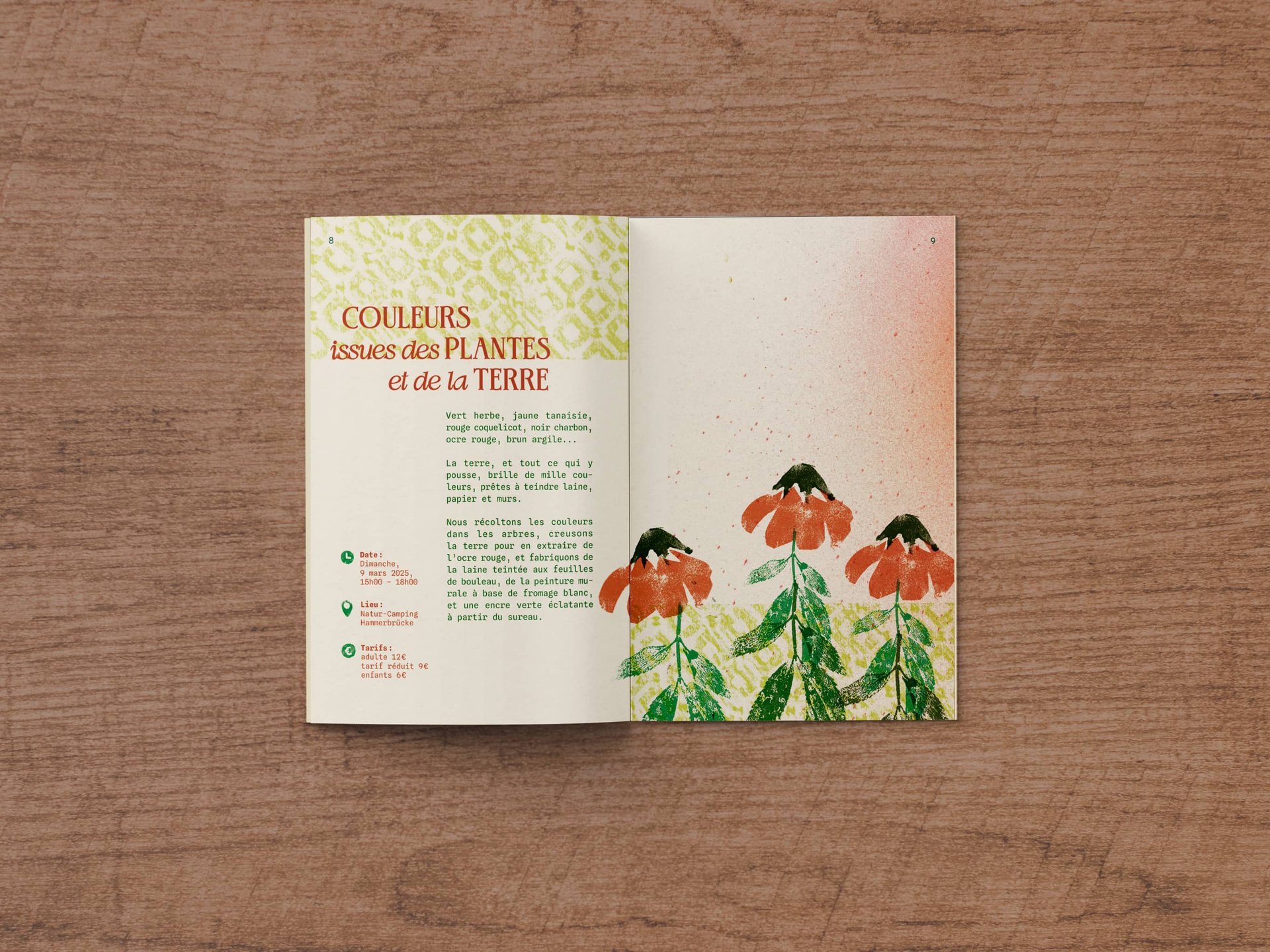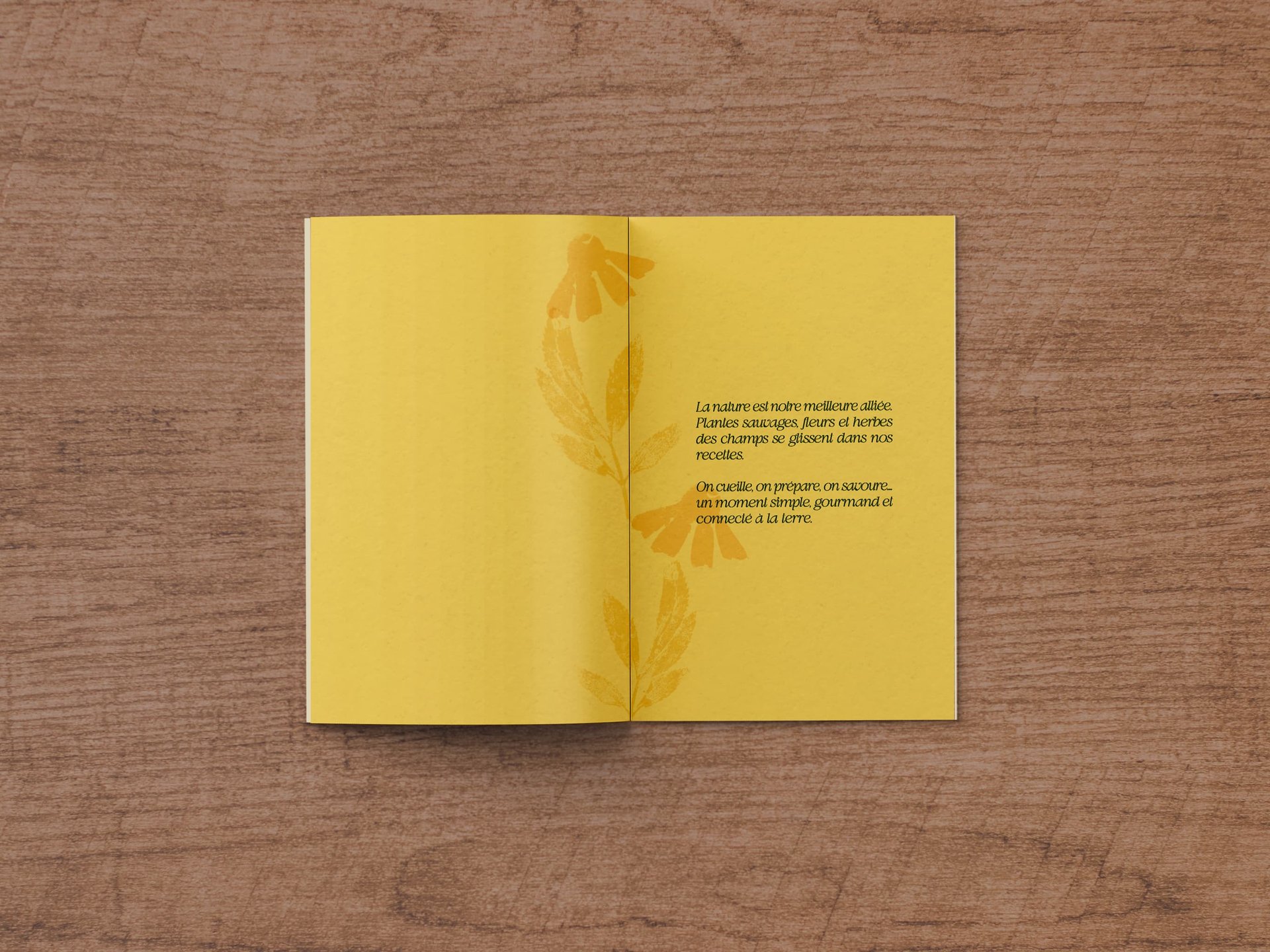 L’ensemble des créations graphiques, photographies, illustrations botaniques et pictogrammes a été réalisé par mes soins, en grande partie à partir de tampons.