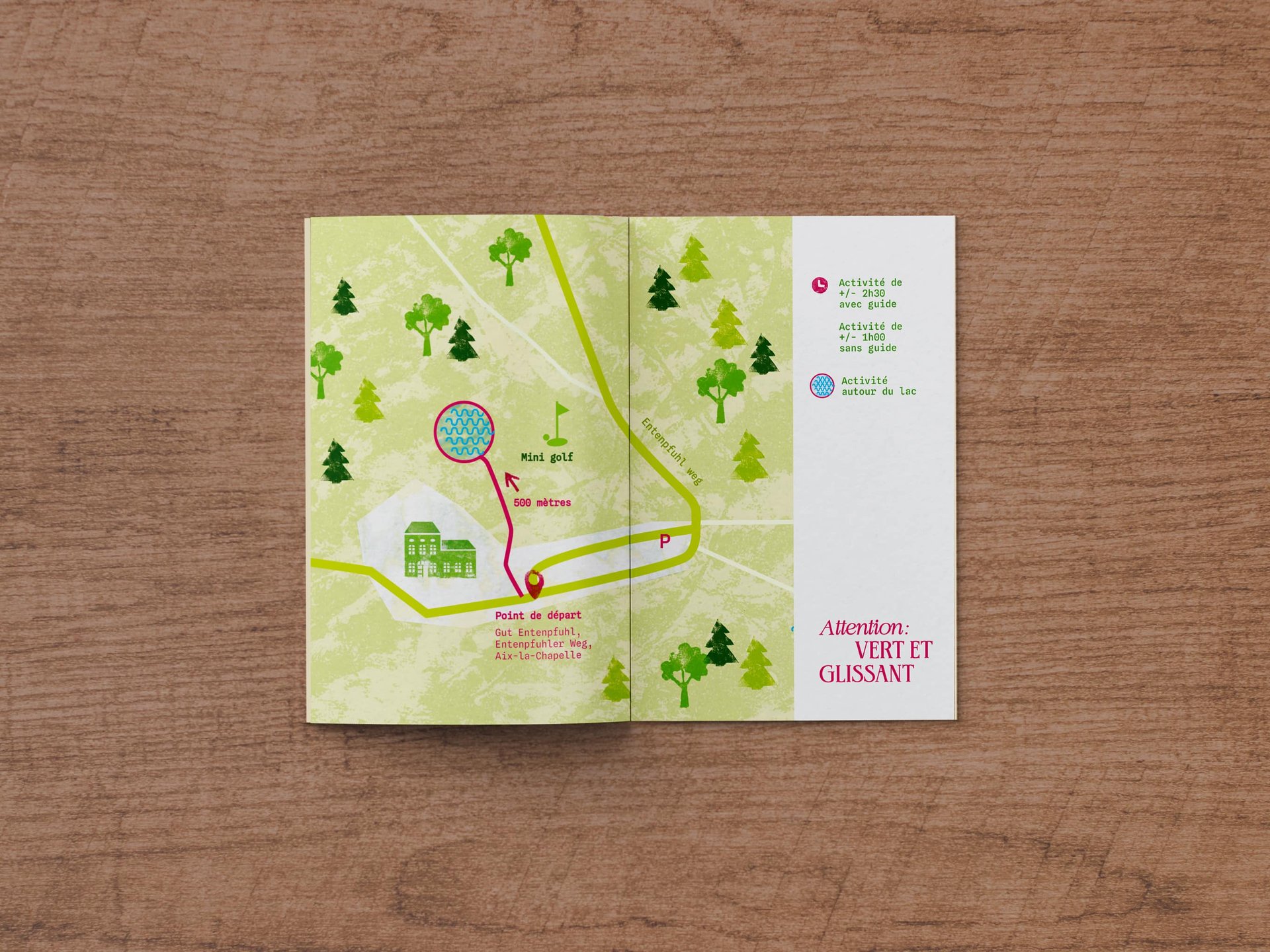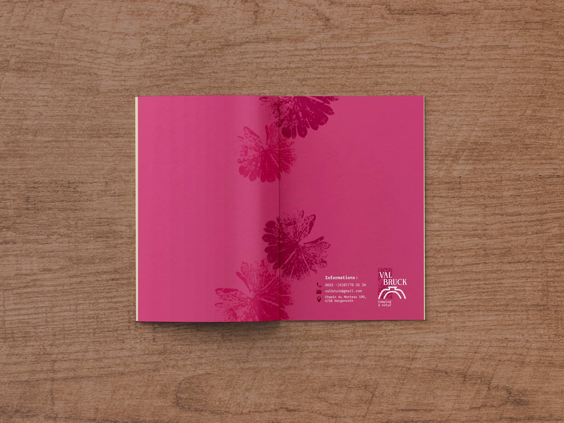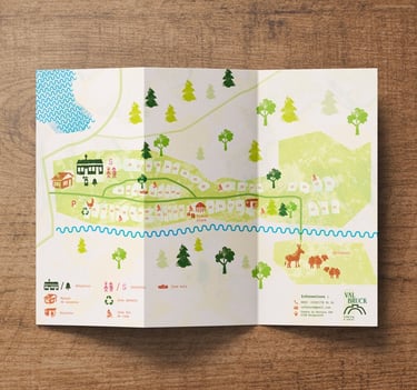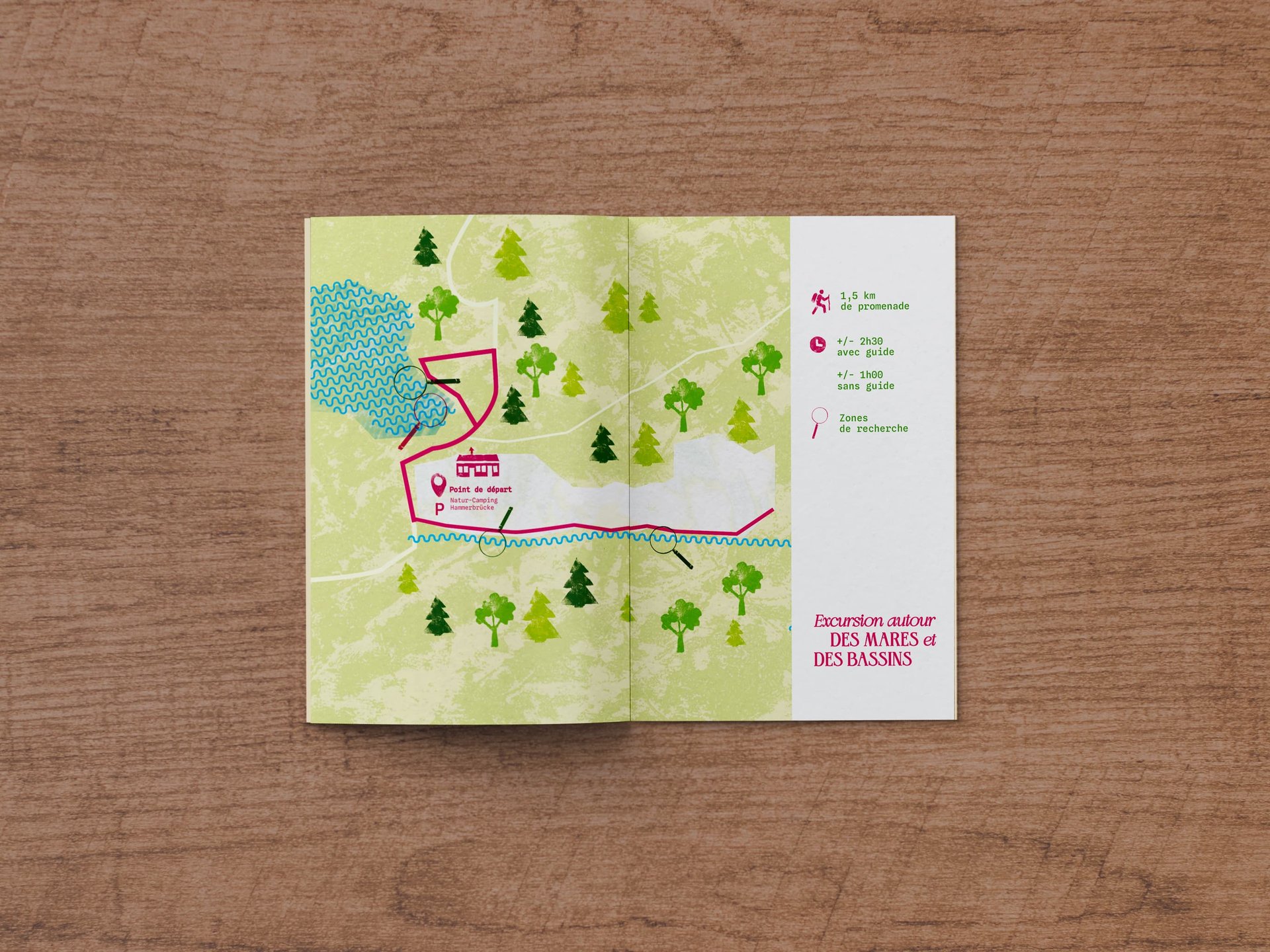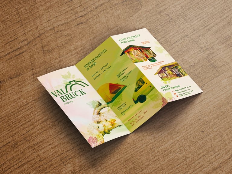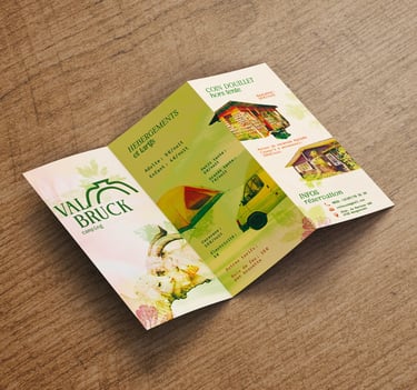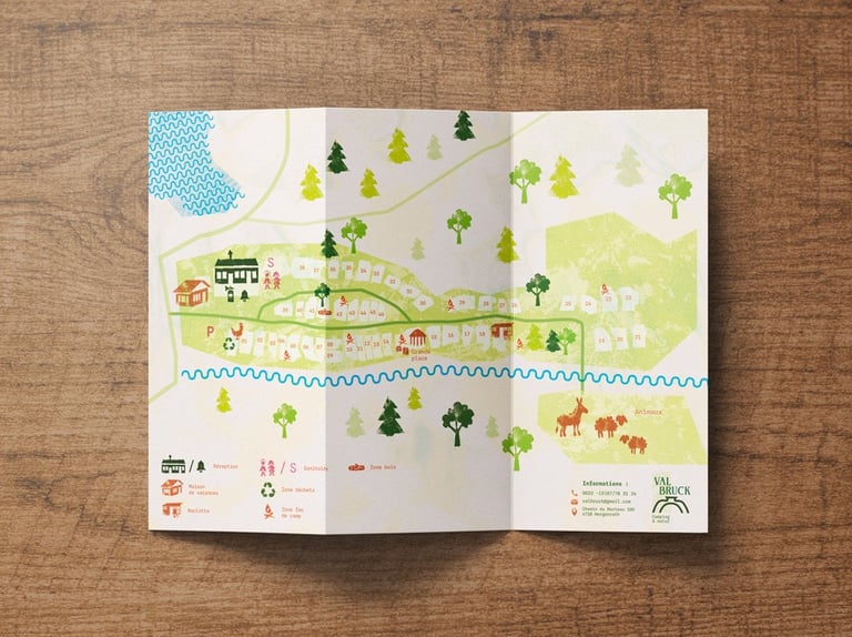 Le projet comprend une brochure pratique (informations, tarifs et plan du camping) ainsi que trois brochures thématiques dédiées aux activités :