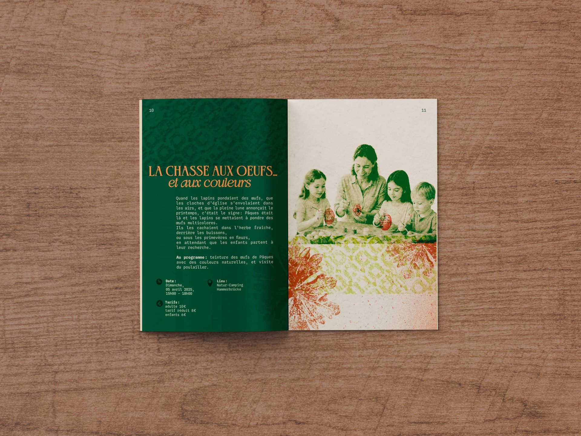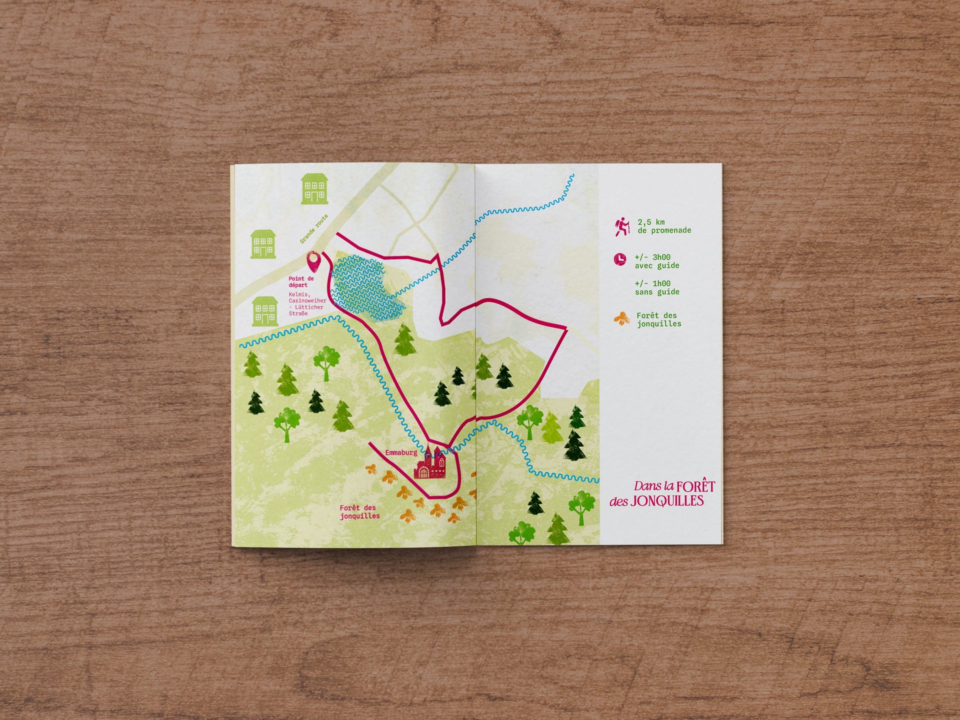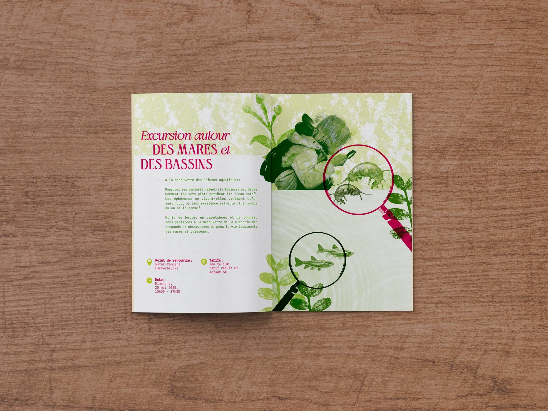 Le projet comprend une brochure pratique (informations, tarifs et plan du camping) ainsi que trois brochures thématiques dédiées aux activités :