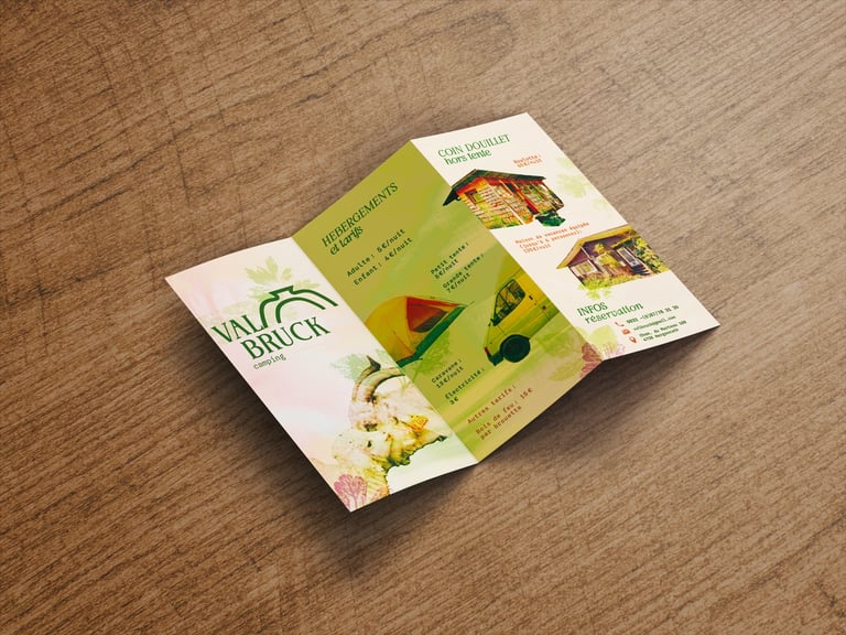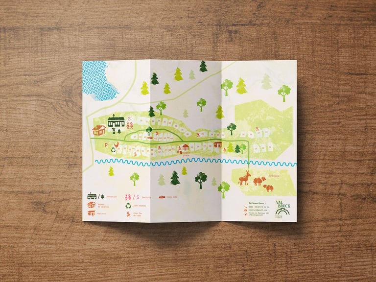Le projet comprend une brochure pratique (informations, tarifs et plan du camping) ainsi que trois brochures thématiques dédiées aux activités :